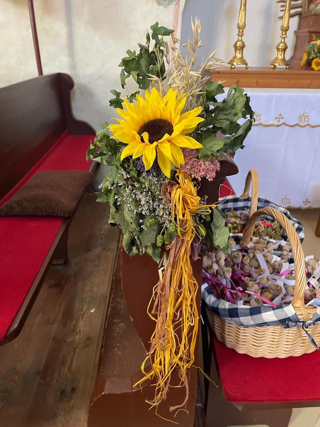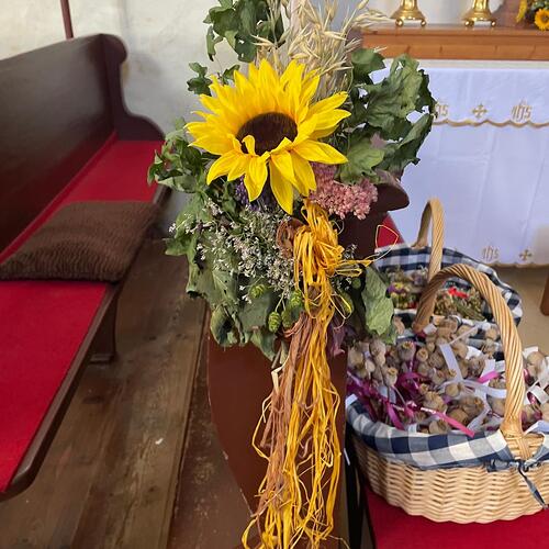 Die Segnung der Erntekrone wurde begleitet von der FF- Groß Reinprechts, FF- Gloden und den Kindern mit den verschiedenen Früchten, die zum Altar gebracht wurden. Gesegnet wurden die Gaben von Herrn Pfarrer Peter Rückl und für die musikalische Umrahmung sorgte der Musikverein Albrechtsberg.