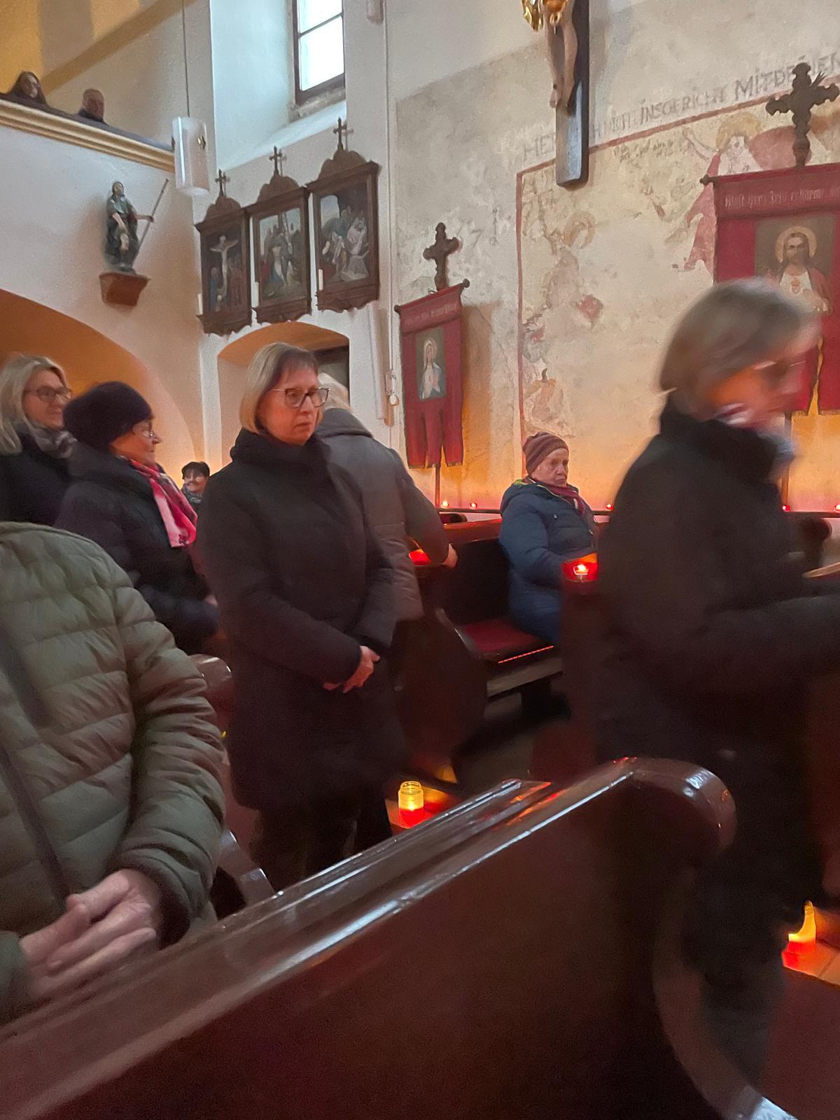 Die Kerzenflammen tauchten den Kirchenraum in warmes Licht, und der Raum schien für einen Augenblick innezuhalten. Die Stille wurde nur von leisen Gebeten und dem sanften Klang der Orgel unterbrochen, die eine friedliche Nähe zur Jahreszeit spürbar machte. Die Gemeinschaft nahm diese Stunde der Einkehr dankbar wahr und ließ sich durch das Licht und die Worte einstimmen auf das, was der Advent bedeutet: Erwartung, Hoffnung und das Vertrauen, dass Dunkelheit Licht birgt.