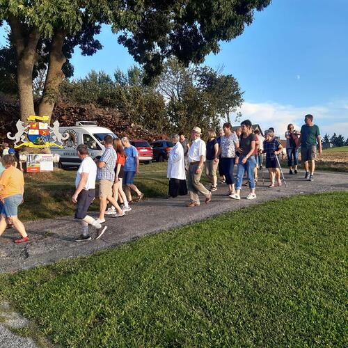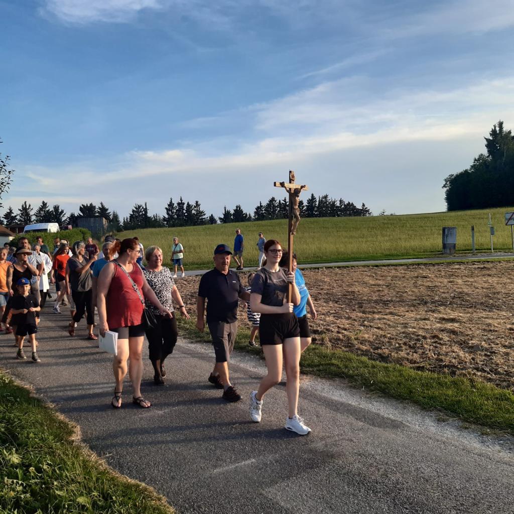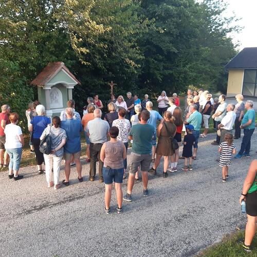 Startpunkte waren die Pfarre Groß Reinprechts, Kreuz- Grimas Gloden und das Marterl – Gloden, Kornberg. Der Weg führte uns dann zum Hubertusmarterl Kornberg über zum Marterl in Kornberg. Die letzte Station war bei der Halle der Familie Klemmer, wo die Hl. Messe gemeinsam gefeiert wurde. Die beiden Marterl in Kornberg wurden auch von Herrn Pfarrer Rückl gesegnet.