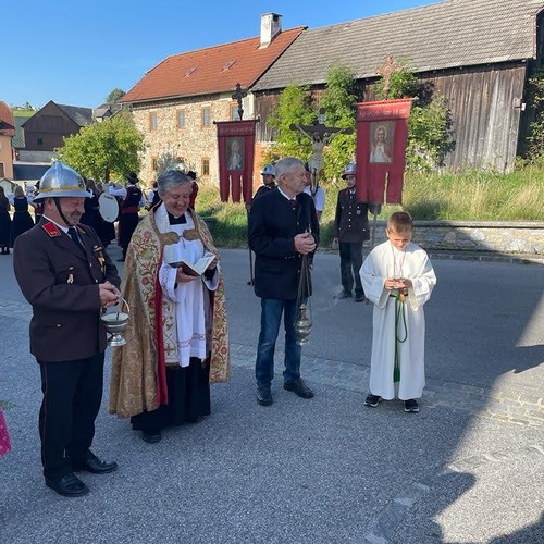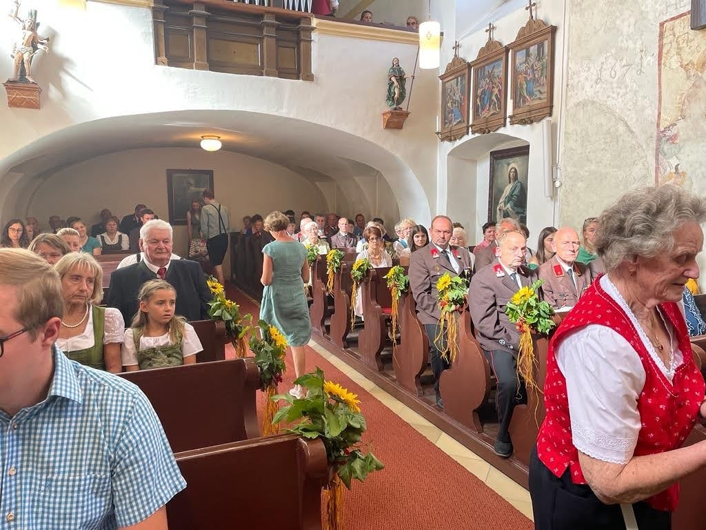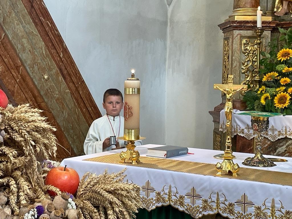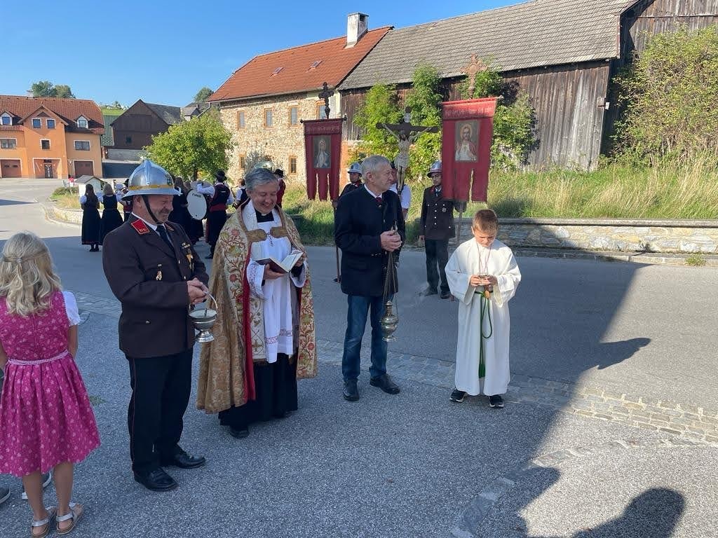 Am 10. September feierte Pfarrer Peter Rückl mit der Pfarrbevölkerung, der freiwilligen Feuerwehr sowie der Blasmusikkapelle das Erntedankfest.
